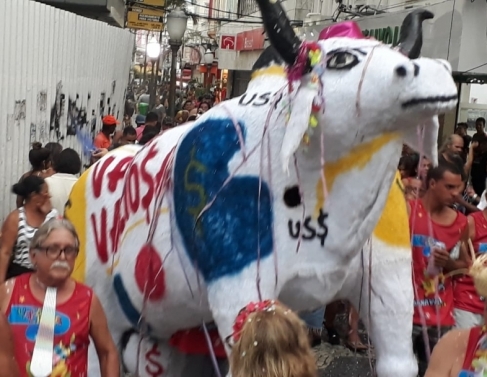 Pelo 11º ano consecutivo, o Sindicato dos Bancários de Campos dos Goytacazes e Região marcou presença no Carnaval de rua da cidade com o desfile da Vaca Valiosa. Nem mesmo a tempestade que atingiu Campos nesta quinta-feira tirou a empolgação dos foliões, que aproveitaram para protestar.
