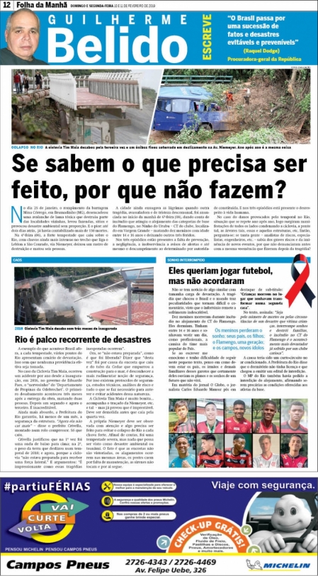 No texto, assinala: “Seja pelo número de mortes ou pelas circunstâncias de um desastre que vitima crianças, interrompe sonhos e destrói famílias, o incêndio no CT do Flamengo é o acontecimento mais devastador já sofrido por um clube carioca”.