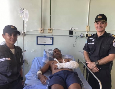 Na tarde desta segunda-feira, o comandante do 8º Batalhão da Polícia Militar, o Tenente Coronel Ibiapina, visitou o policial no Hospital Ferreira Machado, onde segue internado. "Segundo o médico que o atendeu, ele passou por cirurgia, mas está bem e consciente. Por enquanto, uma segunda intervenção está descartada. Ele segue no hospital porque está recebendo antibióticos por meio intravenoso", afirmou.