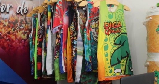 A loja de Alcimar Mello é o point de vendas de quase todos os abadás, muitos confeccionados na Bahia. Cada bloco tem um estilo diferente. São blocos para crianças, família, arrastão, alguns com Kits de open bar. Cada abadá custa em torno de R$ 40. E, segundo Alcimar as vendas estão só começando.