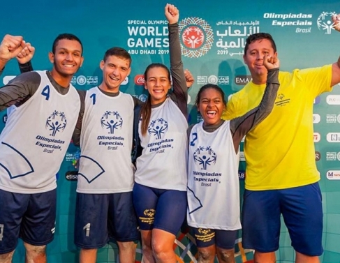 Nesta segunda-feira, mesmo com a derrota por 2 sets a 0 para o Uruguai, a Seleção Brasileira de vôlei de praia conquistou medalha de bronze nos Jogos Mundiais das Olimpíadas Especiais, em Abu Dhabi, nos Emirados Árabes. Quatro atletas do Projeto Paraesporte da Prefeitura de Campos, fazem parte da equipe. São eles: Ihasmmin Rodrigues, Jean Victor Ferreira, Letícia Maciel, Everton Soares, além do técnico Fábio Coboski. Na estreia, os brasileiros haviam perdido por 2 sets a 1 para a Sérvia, mas vieram de oito vitórias na fase pré-classificatória: