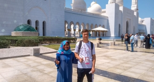 Após terem conquistado medalhas de bronze no vôlei de praia e prata no futebol, nos Jogos Mundiais das Olimpíadas Especiais, os atletas do projeto Paraesporte, da Fundação Municipal de Esportes (FME) de Campos, estão realizando atividades culturais nos Emirados Áraboes Unidos. Nesta quarta-feira (20), os jogadores de vôlei Jean Victor Ferreira e Ihasminm Ribbeiro visitaram com o professor Fábio Coboski, coordenador do Paraesporte, a Mesquita Zayed, maior mesquita do mundo.