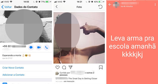 Nas mensagens trocadas com uma colega de turma, o menor informou: “Na hora da saída sai correndo o mais longe que puder senão vai sobrar pra tu tbm” (sic). Em outra postagem, ele fala: “Leva arma pra escola amanhã” (sic).