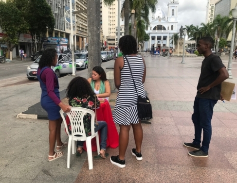 Uma mesa e duas cadeiras, na praça Santíssimo Salvador. Em uma delas, a estudante de Artes Cênicas da UniRio, Yhorana Carpanelli, aguardava voluntários dispostos a conversar e escrever sobre perdão. Esta foi a performance deste sábado (22) do Intercâmbio da universidade carioca que acontece em Campos até este domingo (23).