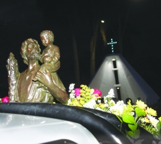 — “Bom homem”, respondeu-lhe o Menino, “não te espantes, pois não só carregaste o mundo inteiro como também o dono do mundo. Eu sou Jesus Cristo, o Rei que estás a servir neste mundo, e, para que saibas que digo a verdade, põe teu cajado no chão junto à tua casa e amanhã verás que ele estará coberto de flores e de frutos”. Após o episódio da criança no rio, Réprobo assumiu o nome de Cristovão (carregador de Cristo), e por isso é considerado o padroeiro dos motoristas, condutores e viajantes. Sua imagem representa exatamente o momento: o menino Jesus em seus ombros e o cajado na mão — explicou o padre Wallace Ortêncio de Azevedo.