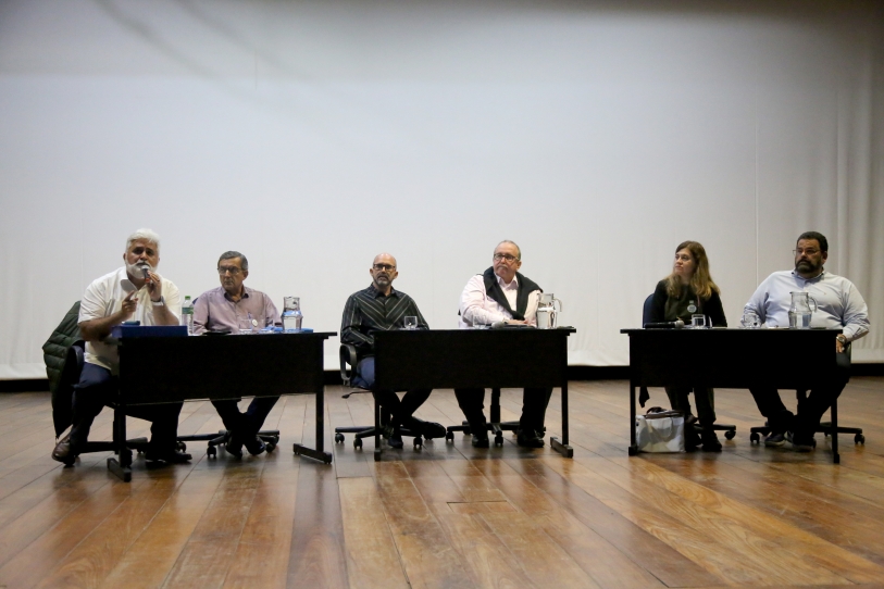 Por ordem de sorteio, a chapa 12 foi a primeira a responder a pergunta direcionada a todos, sobre o porquê de ser candidato à reitoria, diante do atual contexto da universidade e que se desenha para o futuro.