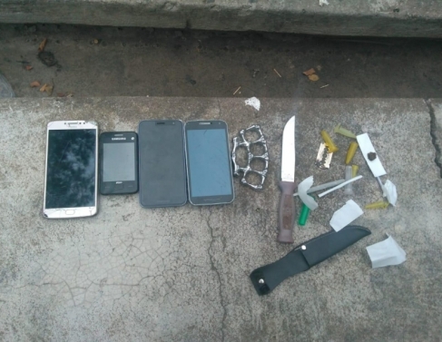 O Grupamento de Proteção Social (G.P.S) foi acionado pelo Centro Integrado de Segurança Pública (CISP), para averiguar atitude suspeita de cinco jovens. No local, os agentes apreenderam três bicicletas, quatro celulares, uma faca, um soco inglês, sete pinos vazios e maconha.