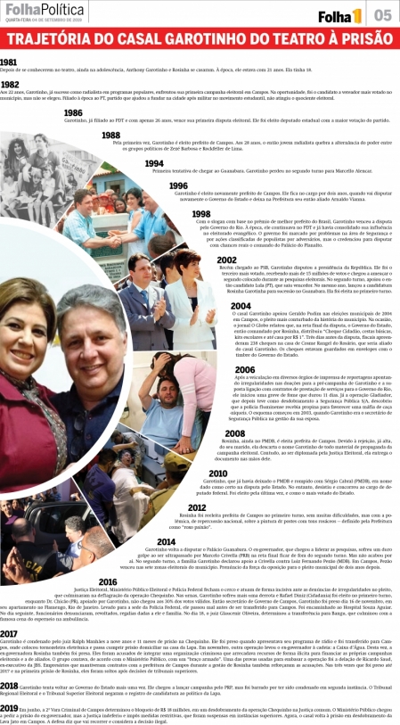 Os ex-governadores Anthony e Rosinha Garotinho foram presos, no início da manhã desta terça-feira (3), no apartamento onde moram, no bairro do Flamengo, no Rio de Janeiro. A denúncia, cujos pedidos de prisão e de busca e apreensão foram acatados pelo juízo da 2ª Vara Criminal da Comarca de Campos, foi formulada a partir de investigações sobre superfaturamento em contratos entre a Prefeitura de Campos e a Odebrecht para a construção de casas populares dos programas Morar Feliz I e Morar Feliz II durante os dois mandatos de Rosinha como prefeita (2009/2016). A defesa do casal Garotinho diz que vai recorrer e considera a decisão “absolutamente ilegal, infundada”.