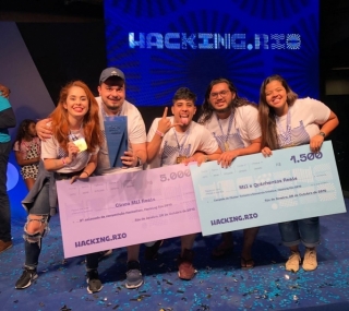 Festival de cultura digital que inclui o maior hackathon da América Latina, o Hacking Rio teve 13 campistas entre seus participantes no fim de semana passado. Seis deles foram ao pódio, com destaque para a duplamente premiada Luíza Valério. Ela saiu vitoriosa no cluster de Turismo e Economia Criativa, além de ter ficado em segundo lugar com sua equipe no desafio geral. Seu irmão Rafael Valério foi o vencedor do cluster Energia, enquanto o quarteto formado por Mirella Ribeiro Queiroz, Augusto Amaral Pereira, Pedro Sousa Garcia e Alysson Alcântara Alves conquistou o título no cluster Distribuição e Conveniência.