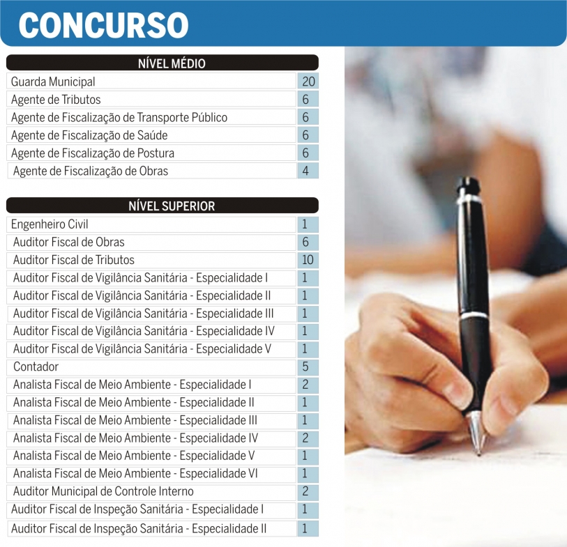 As inscrições iniciam nesta terça-feira, 29, seguem até 28 de novembro e devem ser feitas no site www.institutoibdo.com.br. Para nível médio, a taxa de inscrição é de R$ 50,00 e superior é de R$90,00. “Anunciamos este concurso no Dia do Servidor Público para ratificar nosso compromisso cada vez maior em reforçar nossos quadros de funcionários efetivos, principalmente em áreas necessárias para o bom desenvolvimento do setor público”, ressaltou a prefeita Carla Machado.