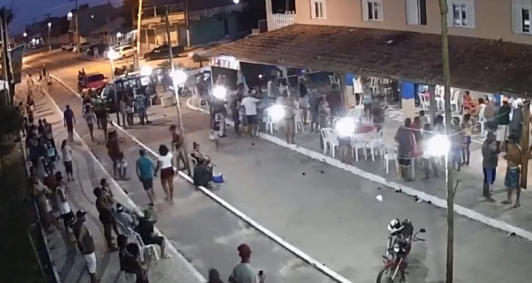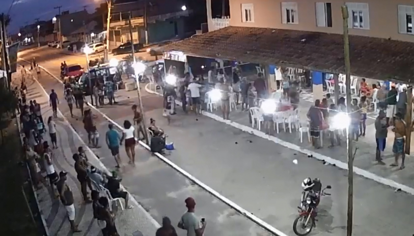Um homem de 28 anos foi assassinado e outras oito pessoas foram baleadas na noite desse domingo (19), na praia de Santa Clara, em São Francisco de Itabapoana. Bruno da Silva Melo andava pela avenida Atlântica, quando foi atingido pelas costas. Uma câmera chegou a gravar o momento em que um homem chega em frente ao bar Mineirão e abre fogo no meio de uma grande concentração de pessoas, que correram assustadas. Três suspeitos, com idades entre 18 e 28 anos, foram presos. Outro suspeito, menor de idade, é considerado foragido. O 8º Batalhão de Polícia Militar (BPM) emitiu nota sobre a ocorrência no início da tarde desta segunda-feira (20).