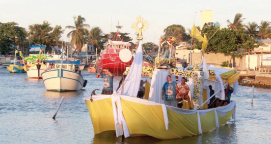 O período é de festa em Atafona desde o domingo (12) de Páscoa. Se fosse em uma época normal, milhares de fiéis estariam no litoral de São João da Barra neste domingo (19) para acompanhar a procissão fluvial, uma das homenagens dos pescadores à padroeira Nossa Senhora da Penha. Multidão ainda mais expressiva estaria reunida nesta segunda-feira (20), às 17h, para participar da procissão terrestre, manifestação religiosa que está entre as maiores do Estado do Rio de Janeiro, reconhecida como Patrimônio Cultural Imaterial. Mas o mundo não vive dias de normalidade. A pandemia do coronavírus existe e as medidas de restrição social impedem aglomerações. A igreja católica tem usado como lema que é a favor da vida e, por isso, suspendeu os ritos com a presença de fiéis — inclusive no Vaticano, na Páscoa, a data mais importante para a religião. Na festa da padroeira de Atafona não é diferente: todas as celebrações são com o Santuário de portas fechadas. O mar de fé que invadia as ruas de Atafona se propaga pelas ondas virtuais. A única exceção será nesta segunda, dia maior das celebrações, quando a imagem da santa será levada, em carro aberto, às principais ruas da praia e da sede do município.