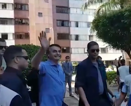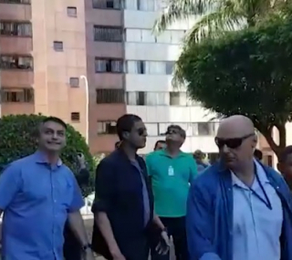 Na farmácia e no prédio, apoiadores se juntaram para ver o presidente, também contrariando a orientação de se evitarem aglomerações. Bolsonaro pegou na mão de alguns apoiadores.