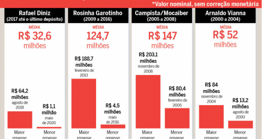O município de Campos, que já chegou a receber R$ 203 milhões (R$ 376,7 milhões, em valores atuais) em um único repasse de participação especial (PE), em novembro de 2008, teve R$ 1,1 milhão depositado nessa quarta-feira (13) pela produção de petróleo e gás do 1º trimestre deste ano, o menor repasse de PE desde que a compensação começou a ser paga aos entes produtores, em 2000. A queda de arrecadação, que começou a se desenhar em 2015 e se acentuou no ano seguinte, atingiu em cheio o governo municipal em 2020, quando os dois repasses somados não ultrapassaram R$ 7 milhões, valor considerado muito baixo até mesmo para os depósitos mensais. E a tendência é de repasses ainda menores ou até nulos para os próximos meses. Especialista estima uma perda próxima dos R$ 250 milhões em royalties e PE em 2020, em relação a 2019, que já foi cerca de R$ 210 milhões menor do que 2018. Isso em meio à pandemia da Covid-19, que vem desafiando governos de todo o mundo a equilibrar a situação financeira com o aumento dos investimentos na Saúde.