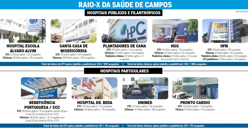 Ojuiz Paulo Maurício Simão Filho também listou providências a serem tomadas pela Prefeitura de Campos, intimada na terça, entre elas a ampliação da oferta do número na rede pública ou contratualizada para 457 leitos clínicos e 129 leitos de UTI exclusivos para Covid-19. Ao blog Opiniões, do jornalista Aluysio Abreu Barbosa, hospedado no Folha1, a Prefeitura citou em nota a criação em março do CCC, que funciona com 19 leitos de UTI, cinco unidades de pacientes graves e 40 leitos de clínica médica. Na noite de sexta (22), a Prefeitura confirmou a ampliação de 10 leitos de UTI e 20 de clínica médica no local.