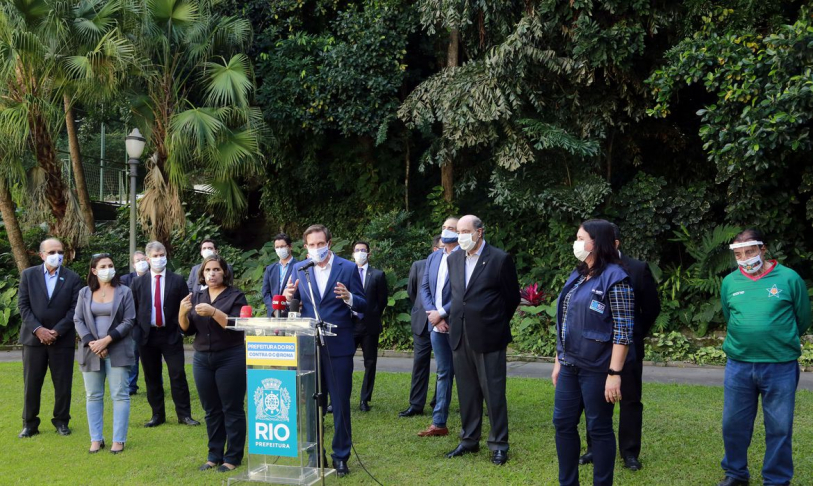 — A reunião foi democrática e amistosa e deixamos bem claro que as seis fases indicativas de retorno às atividades, estipuladas pela Prefeitura, não são obrigatórias. Quem não quiser seguir e achar melhor esperar mais um pouco, pode fazer assim. E isso vale para o futebol. Os jogos estão autorizados, e tenho certeza de que a população do Rio de Janeiro aguarda a volta de seus times em campo. Mas há clubes que não acham que devem voltar em junho, só em julho. E como prefeito da cidade fiz esse pedido ao presidente da federação. Para que eles não sofram qualquer tipo de punição. Precisamos entender que cada um reage diferente — disse Crivella, em coletiva no Palácio da Cidade.