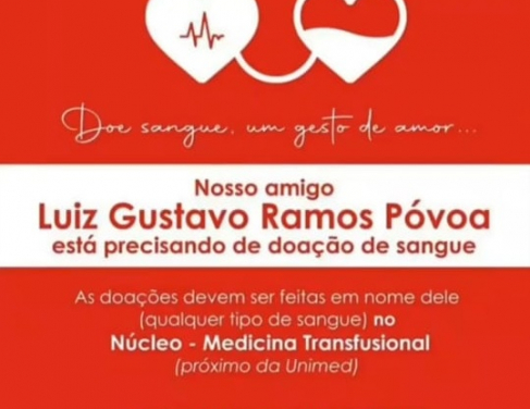 O dentista Luiz Gustavo Ramos Póvoa, de 42 anos, continua internado no Hospital da Unimed, em Campos, e seu estado inspira cuidados. Ele sofreu um atropelamento na tarde da última sexta-feira (18), e teve múltiplas lesões. De acordo com informações de amigos, após o socorro dos Bombeiros, para o Hospital Ferreira Machado (HFM) e, em seguida para o Hospital da Unimed, onde passou por duas cirurgias e permanece no CTI. Uma ação de familiares e amigos está mobilizando doadores de sangue. As doações devem ser feitas em nome de Luiz Gustavo, no Núcleo de Medicina Transfusional, próximo a Unimed.