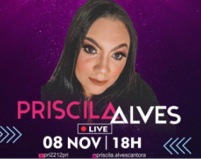 Atração — Com cinco anos de carreira, Priscila Alves tem como forte de seu repertório a música sertaneja. Para a live, a cantora prepara um repertório eclético.