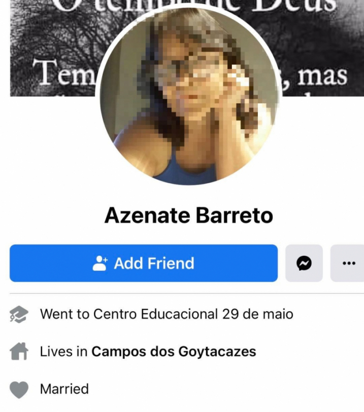 Em uma rápida pesquisa nas redes sociais é possível encontrar o perfil de Azenate que, segundo informações declaradas pela própria, é campista e estudou no Colégio 29 de Maio, próximo aos bairros Parque Leopoldina e Pecuária. O perfil de Azenate no facebook foi removido minutos após a publicação desta matéria.