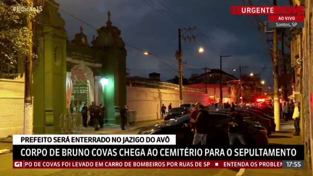 O corpo do prefeito de São Paulo, Bruno Covas (PSDB), foi sepultado no Cemitério do Paquetá, em Santos, no litoral paulista, no início da noite deste domingo (16). Familiares se despediram do político no mesmo local em que o avô, Mário Covas, foi enterrado há 20 anos, após morrer de câncer na bexiga. Covas lutava desde 2019 contra um câncer no sistema digestivo com metástase nos ossos e no fígado.