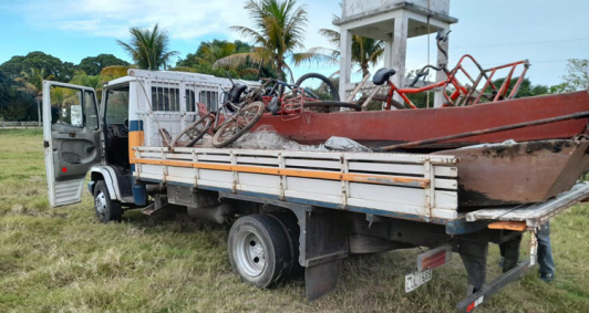 De acordo com a denúncia, havia pesca clandestina com uso de malha inferior a permitida em área alagada de uma propriedade particular. Quando os agentes chegaram ao local, ninguém foi encontrado, mas foram apreendidos cinco bicicletas, três barcos, sete redes e quatro motores.