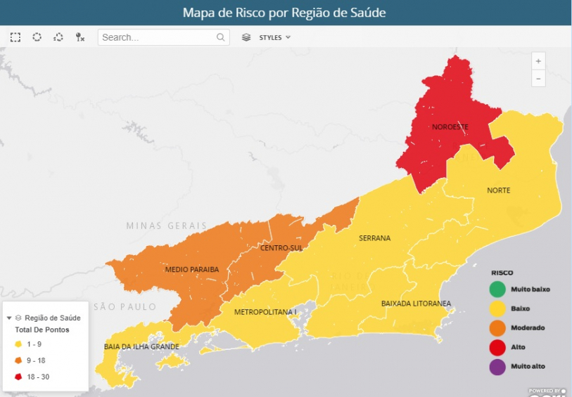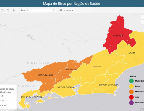 Das nove regiões do estado, seis estão em bandeira amarela: Metropolitanas l e II, Serrana, Norte, Baixada Litorânea e Baía da Ilha Grande. As regiões Médio Paraíba e Centro-Sul estão na faixa laranja; e a Noroeste é a única na bandeira vermelha.