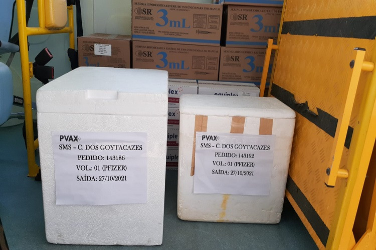 O município de Campos recebeu, nessa quinta-feira (28), 10.188 doses de vacina da Pfizer contra a Covid-19. A nova remessa enviada pelo Governo do Estado veio acompanhada de seringas, agulhas e cloreto de sódio, usado para diluir o imunizante.