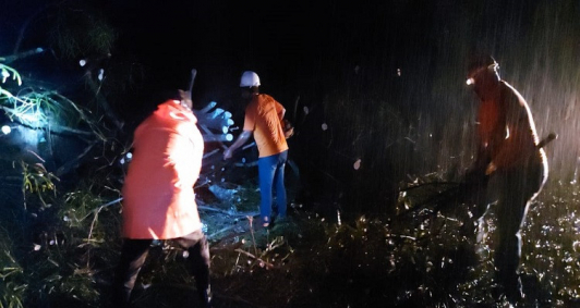 Na noite desta terça, equipes da Secretaria de Defesa Civil de Campos realizaram vistorias e iniciaram o corte para remoção das árvores da pista que liga Santa Maria a Santo Eduardo. O trabalho prosseguirá na manhã de quarta-feira (1), com o apoio da Secretaria de Serviços Públicos, que cederá caminhão e máquina para retirada dos galhos e liberação total da estrada.