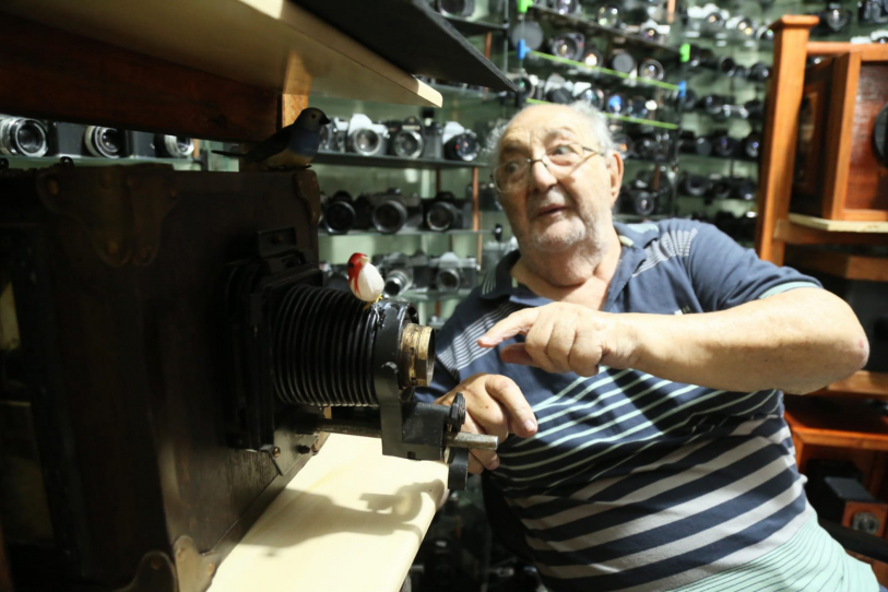 — Eu não comecei colecionando, comecei juntando câmeras. No início, juntava as Yashicas, porque eu já tinha uma equipe de 40 fotógrafos. Só tinha eu, fazia Campos toda, tudo era comigo nas décadas de 1970 e 1980. Depois, surgiu a Rolleiflex, e eu fui para a Rollei, mas não vendi as Yashicas. Guardei, para não armar o concorrente. As máquinas de ponta, só eu tinha. Depois, vieram as da Nikon. Quando fui ver, me espantei, tinha quase mil máquinas. Hoje, são mais de 2 mil máquinas, desde a caixa de sapato, que foi como começou a fotografia. Tem Pikanon, Pentax, todo tipo de máquina. Contando todos os itens, são mais de 4 mil — ressalta.