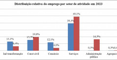 Podemos observar a concentração do emprego em Macaé próximo a 40% no setor de serviços, seguido pelo setor extrativo mineral em torno de 18%, construção civil 15%, indústria de transformação 13% e comércio 12% do total. Como as atividades da cadeia petrolífera têm forte integração nos quatro primeiros setores, uma melhor distribuição é visível quando comparada a outros municípios com características diferentes. Entretanto, também é visível a ausência de reflexos mais consistente nas atividades de comércio, o que mostra a dificuldade de um maior padrão de absorção local. O emprego nas atividades domésticas agropecuárias também é inexpressivo, o que em seu conjunto confirma a dificuldade de fixação de parte importante da riqueza provocada pelos fluxos de investimento na indústria petrolífera.