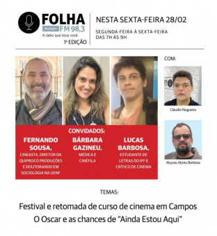 O cineasta e produtor Fernando Sousa, a cinéfila e médica Bárbara Gazineu e o crítico de cinema e estudante de Letras Lucas Barbosa foram os convidados do Folha no Ar desta sexta (28), último antes da noite de entrega das estatuetas do Oscar neste domingo (2) de carnaval.