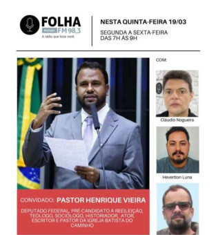 Deputado Pastor Henrique Vieira no Folha no Ar desta quinta