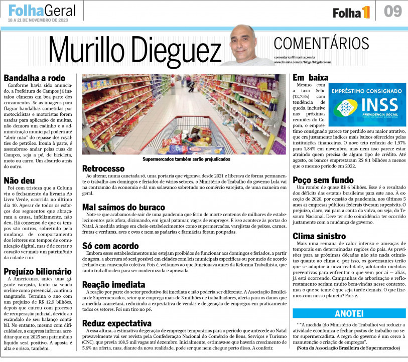 Últimas notícias: Coluna sábado - Dia 18-11-23