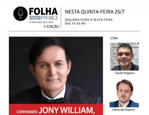 O programa vai ao ar nesta quarta-feira (24), ao vivo, a partir das 7 horas da manhã, na FolhaFM 98,3. Perguntas podem ser enviadas em tempo real pelas plataformas da FolhaFM, no Facebook, YouTube e Instagram. O programa também terá transmissão pela Plena TV.