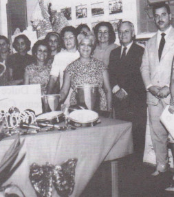 O médico João Barcelos Martins (na foto, de terno escuro), então prefeito de Campos, e Wilson Passos Sá, na Casa da Amizade, em uma exposição de donativos, ao lado de senhoras rotarianas. Anos 60.