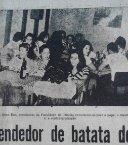A música fazia muito sucesso na época. Virou espécie de hino. No Bar Doce Bar, com clientela constituída, em sua grande maioria, por universitários (na foto do jornal A Notícia, um grupo da Faculdade de Direito de Campos), era uma predileção.