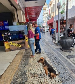 Este cachorrinho ficou assim, sentado, por vários minutos, na porta da filial da Casas Bahia na Calçadão, centro de Campos, na manhã de sexta-feira. Aguardou ali que seu tutores, pessoas simples, percorressem o interior da loja. Nota 10 para a disciplina e obediência.