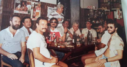 Um grupo de amigos no antigo Bar Estrela, que ficava na Av. Alberto Torres, esquina com Rua dos Bondes, próximo ao Colégio Batista Fluminense. A clientela o chamava de “Bar do Bertolino”, em uma referência ao nome do proprietário.