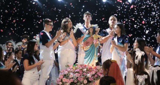“Embora seja uma celebração eucarística, trata-se de uma evangelizaçãoinovadora; as leituras bíblicas são encenadas, como numa peça teatral, comcoreografias e um belíssimo coro formado pelos alunos. O ponto alto é acoroação de Nossa Senhora, realizada pelo 3º ano do Ensino Médio, marcando seuúltimo ano na instituição”, explicam.