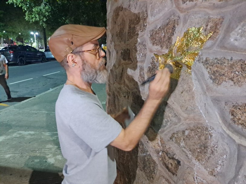 O muro da Casa de Cultura Villa Maria, em Campos, na noite desta sexta-feira (20), está recebendo uma intervenção artística, com a instalação de uma espécie de folhas de ouro para marcar a ocupação artística de Alexandre Mury: "Formas Múltiplas de Continuidade no Espaço". A exposição será aberta ao público no próximo dia 24, das 9h às 17h.