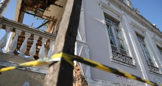 Fita de interdição no Museu Olavo Cardoso chama atenção para situação do prédio