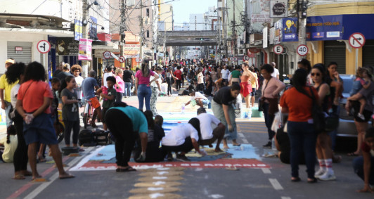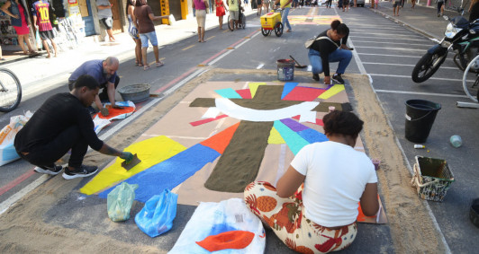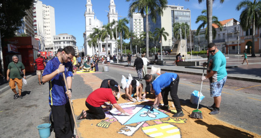 Centenas de fiéis se reúnem para confeccionar tapetes de Corpus Christi em Campos
