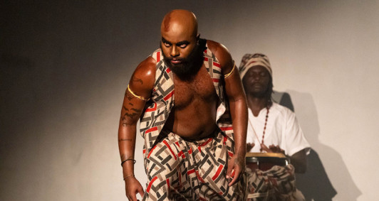 A montagem se justifica pela necessidade de dar visibilidade e protagonismo ao artista negro e às manifestações afro-brasileiras na cena teatral, não como pano de fundo, mas como matéria de pesquisa e elemento formador. Construído a partir de investigações sobre o candomblé ketu-nagô, cantos vissungos e diversas manifestações populares, o espetáculo ancora sua dramaturgia na biografia de Carukango, personagem histórico fundamental da região, lembrado por sua resistência contra a escravidão na Serra de Macaé.