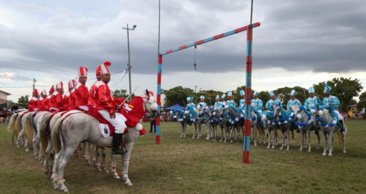 Cavalhada é espetáculo - Outra tradição da festa é a Cavalhada, o espetáculo que representa a batalha entre Mouros e Cristãos, em um total de 12 pares de cavaleiros. A apresentação acontece na arena da Praça e reúne turistas de todo o Brasil para o espetáculo que une fé e cultura e representa a memória coletiva do município há mais de quatro séculos.