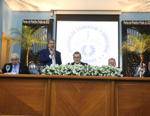 A cerimônia pelos 131 anos da Associação Comercial e Industrial de Campos (Acic) aconteceu na noite desta terça-feira (9) e também foi marcada pela posse da nova diretoria. Empresário do ramo de vestuário, Fernando Luiz Cavalcanti Loureiro foi eleito para o biênio 2022/2024 como novo presidente da entidade. Representando o prefeito Wladimir Garotinho, o vice-prefeito Frederico Paes prestigiou o evento, parabenizou Loreiro, e agradeceu o empresário Leonardo Castro de Abreu, agra ex-presidente da Acic, pelas parcerias firmadas com a Prefeitura de Campos. A solenidade aconteceu no auditório do Edifício Ninho das Águias.