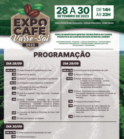 Varre-Sai, a “Capital Estadual do Café”, responsável por 30% da produção de café do estado do Rio de Janeiro, será palco de evento que vai reunir as novidades tecnológicas para o setor cafeeiro, além de levar conhecimento aos produtores rurais. A Expo Café vai acontecer de 28 a 30 de setembro, na Praça de Lazer Pedro de Assis. Durante o evento, será realizada a final do Concurso de Cafés Especiais com R$ 25 mil em premiação, concedida pela Prefeitura de Varre-Sai para incentivar a melhoria da qualidade do café produzido no município.