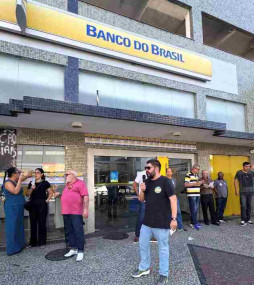 O Sindicato dos Bancários de Campos realizou, nessa segunda-feira (27), um ato contra o encerramento do atendimento de caixa presencial na agência do Banco do Brasil localizada na Avenida Pelinca. O protesto aconteceu em frente à unidade.