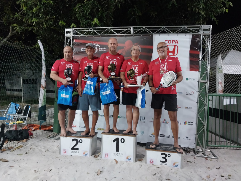— Os parabéns são coletivos, para todos do Saldanha, que mais uma vez organizam um torneio desse nível — disse Carlos Boynard. — Destaco o Joaquim Sanguedo, que é um guerreiro. Tenho também que cumprimentar o Ronaldo, que participou sendo o mais veterano. É uma integração muito legal. Para mim, o resultado é o que menos interessa. A gente foi atleta a vida toda, então, chegar nessa idade e ainda conseguir jogar, brincar, acho que é o mais interessante. Agradeço ao meu parceiro, que foi incansável, jogou machucado na última partida. E nos próximos dias teremos mais grandes jogos nas outras categorias. O torneio do Saldanha é realizado com excelência — complementou Carlos, tendo as palavras compartilhadas por Jorge Falcão.