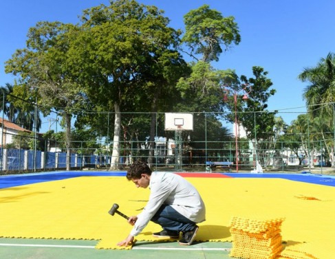 Uma das quadras do Jardim São Benedito recebeu, nessa segunda-feira (3), a instalação de piso de polipropileno, que é uma tecnologia mundialmente utilizada, ideal para diversas práticas esportivas, como futsal, basquete, vôlei e handebol.