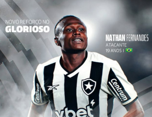 O Botafogo tem um novo reforço para a temporada 2025. Trata-se do campista Nathan Fernandes, atacante de 19 anos revelado pelo Grêmio. O Alvinegro adquiriu 100% dos direitos econômicos do jogador, que assinou contrato de cinco anos com o clube carioca.
